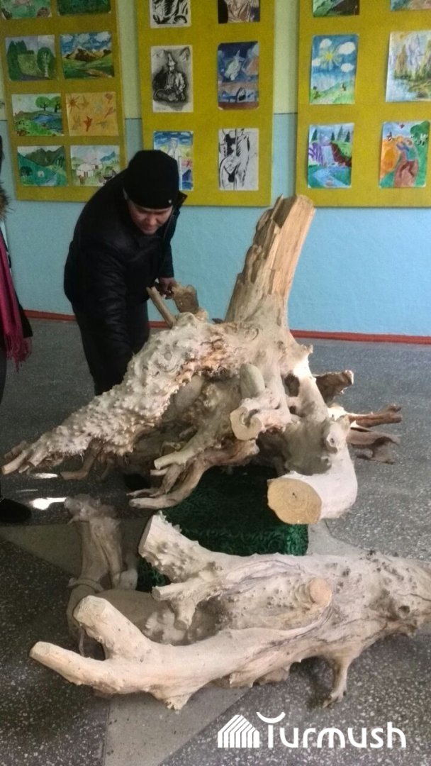 Айыл турмушу: Таластык мугалим Р.Шабралиев жыгачтан жолборс жасап жатат (фото)