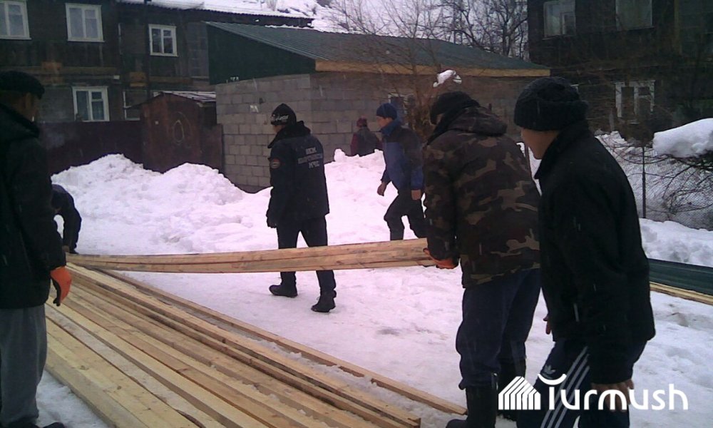 Кара-Көлдө көп кабаттуу үйдүн чатыры сынып, депутат өз чөнтөгүнөн оңдото баштады (фото)