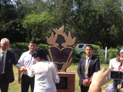 Боролдойдогу мектепти 20 жыл мурун бүтүргөндөр мугалимдердин урматына монумент орнотушту (фото)