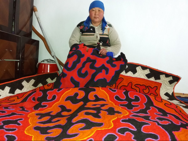 Айыл турмушу: Нарындык А.Дыйканбаева 15 жылдан бери буйрутма менен шырдак жасайт (фото)