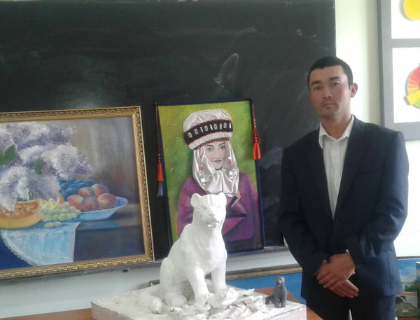 Айыл турмушу: Ак илбирсти сактап калууга чакырган нарындык Адилет анын айкелин чоподон жасады (фото)