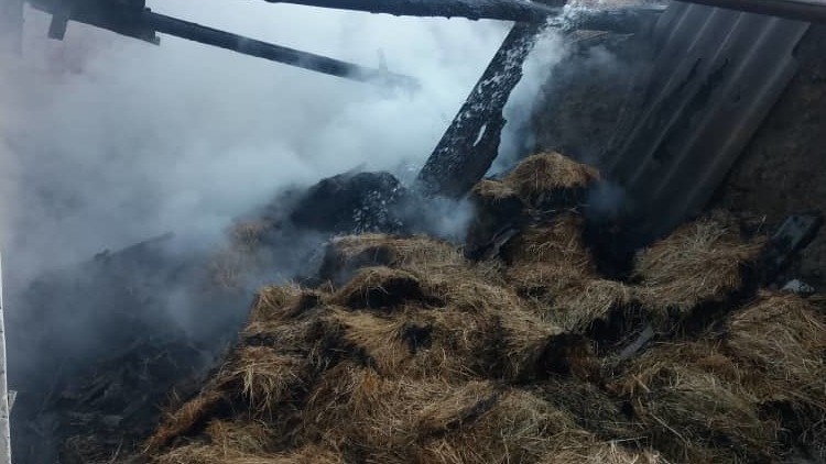 Кадамжайдын Үч-Коргон айылында сарай өрттөнүп, 2 тонна чөп күйүп кетти