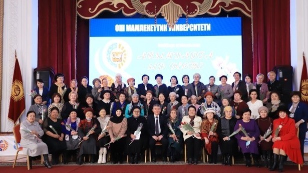 ОшМУнун ардагер айымдарына майрамдык маанай тартууланды