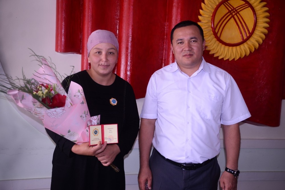 Жалал-Абадда 7 баланын энеси — 33 жаштагы Эркинай «Баатыр эне» орденин тагынды. Сүрөт