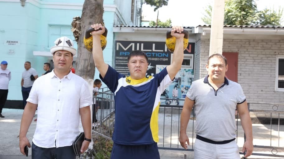 Ош шаарынын тургуну 24 кг салмактагы эки гиряны 46 жолу көтөрдү (сүрөт)