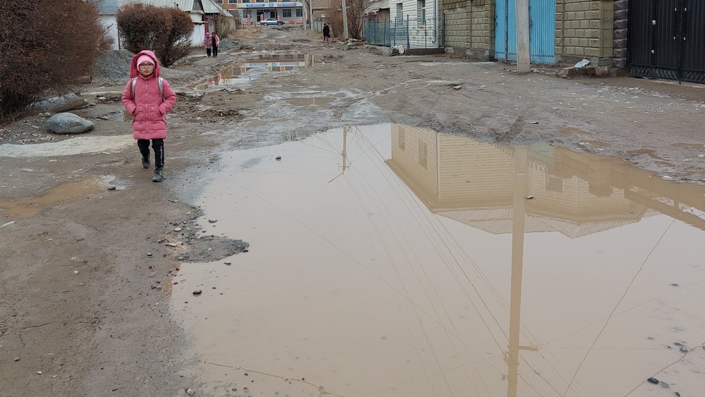 Нарын шаарынын көлчүккө айланган көчөсү. Сүрөт
