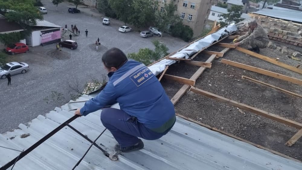 Жалал-Абаддагы шамалдын айынан 7 унааны дарак басып, бир топ имараттардын чатыры учту