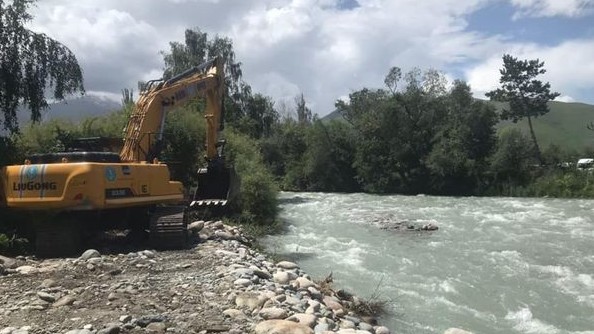 Ак-Суу суусунун оң жана сол жээктери бекемделип жатат