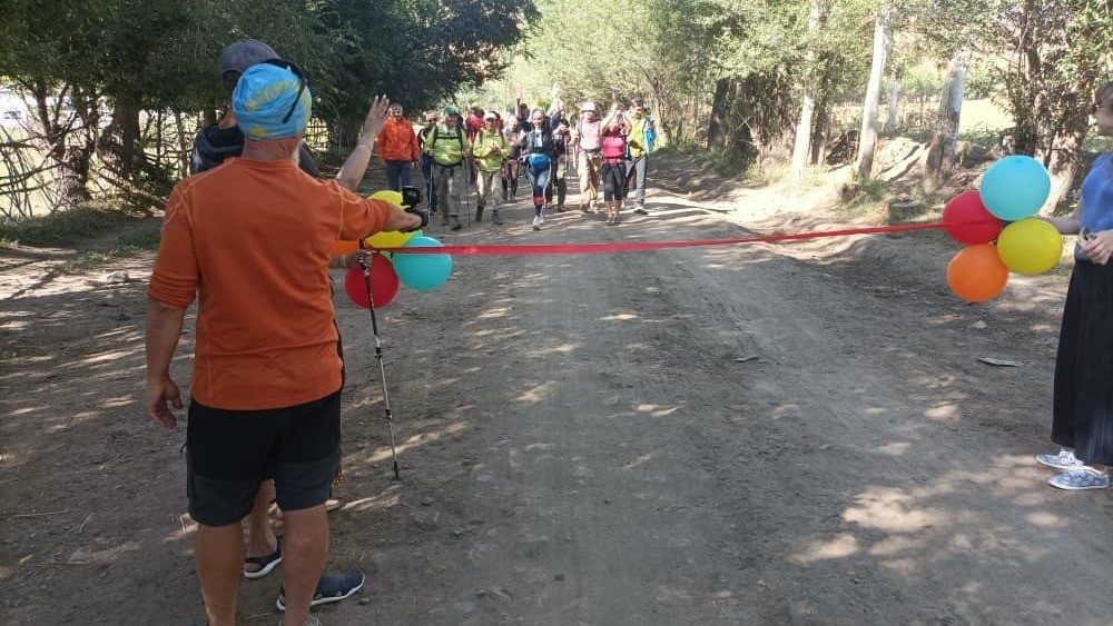 Түптө 3 күн жөө жүрүш жасаган кыргыз жана казак туристтерди тосуп алышты