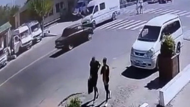 Кеминде катуу ылдамдыктагы кичи автобус жөө адамды өлтүрө сүзгөн учур видеого түшүп калды