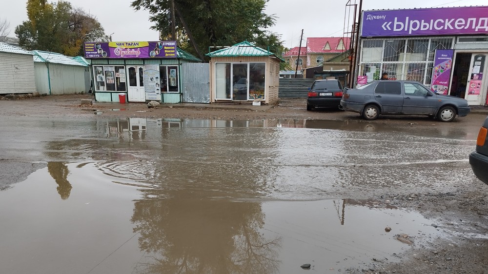 Жамгырдан кийин көлчүккө айланган Кочкор айылы. Сүрөт