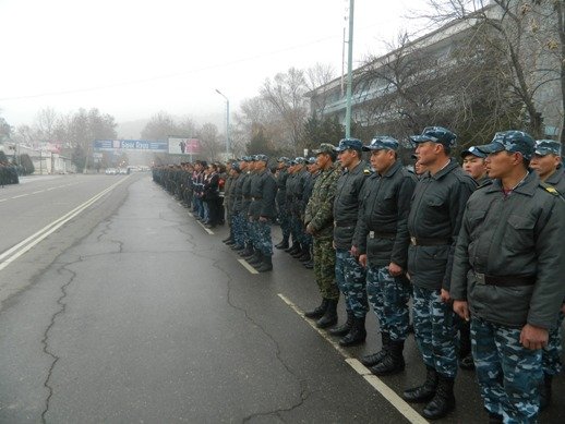 Жалал-Абад облусунда милиция кызматкерлеринин жана элдик кошуундардын салтанаттуу тизими болду (фоторепортаж)