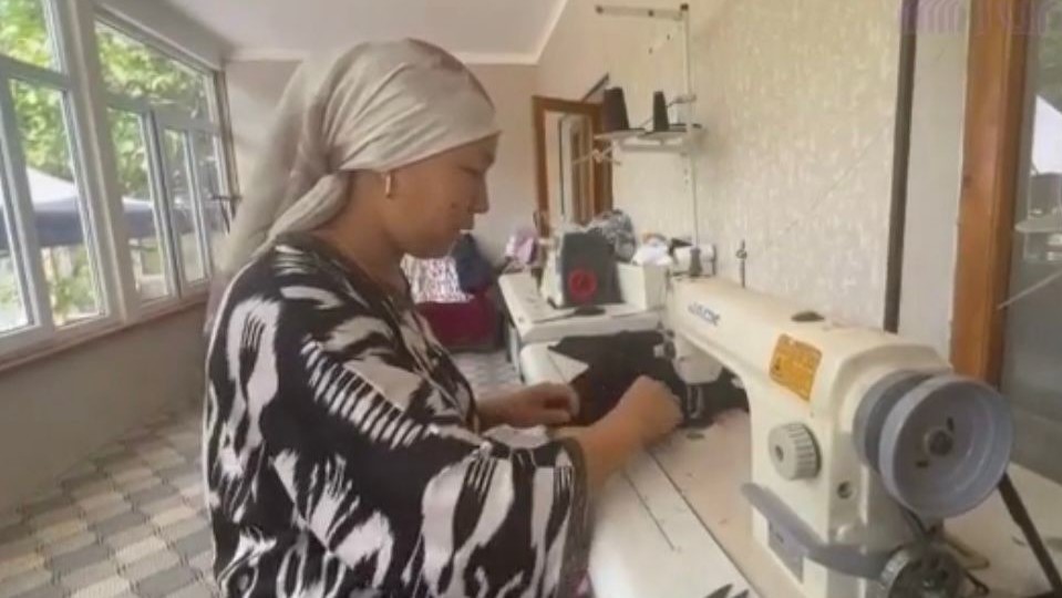 Айыл турмушу: Баткендик мугалим Б.Анарбаева кыз-келиндерге түрдүү кийимдерди тигип жатат