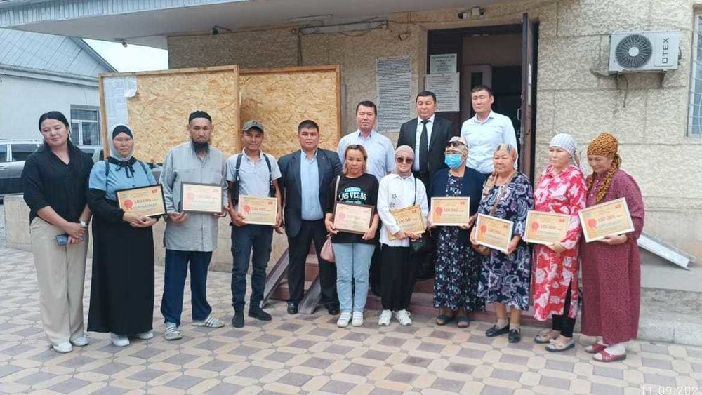Министрлер кабинетинин 2022-жылдын 15-июлундагы «Социалдык контракттын негизинде социалдык жардам берүү» токтомун ишке ашыруу боюнча өлкөнүн бардык аймактарында бизнес пландары жактырылган аз камсыз үй-бүлөлөргө 100 миӊ сомдун сертификаттары тапшырылган.