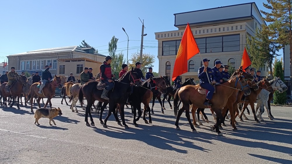 Талас шаарында өткөн жөө жүрүшкө куткаруучулар аттар менен келишти