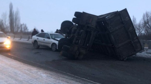 Кең-Булуң айылында жеңил унаа менен кагышкан жүк ташуучу унаа оодарылып кетти. Видео
