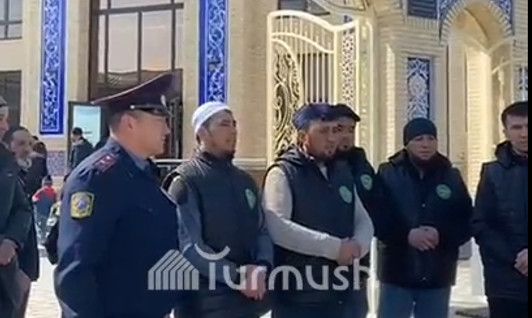 Унаа тыгыны: Ошто жол тескөөчүлөр мечитке келген жарандарга түшүндүрүү ишин жүргүзүп жатат