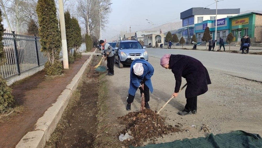 Гүлчө айыл аймагында көчөлөрдү тазалап, көчөт отургузушту