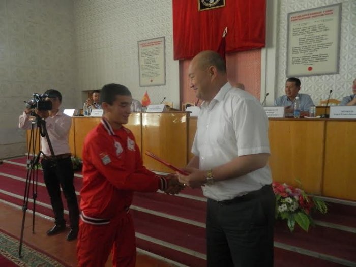 Өкмөт өкүлү Ж.Разаков эл аралык мелдештердин жеңүүчүлөрү, ага-ини Азамат менен Акжолду сыйлады