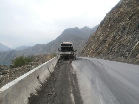 В Токтогульском районе на автодороге Бишкек - Ош сгорел грузовик (фото)