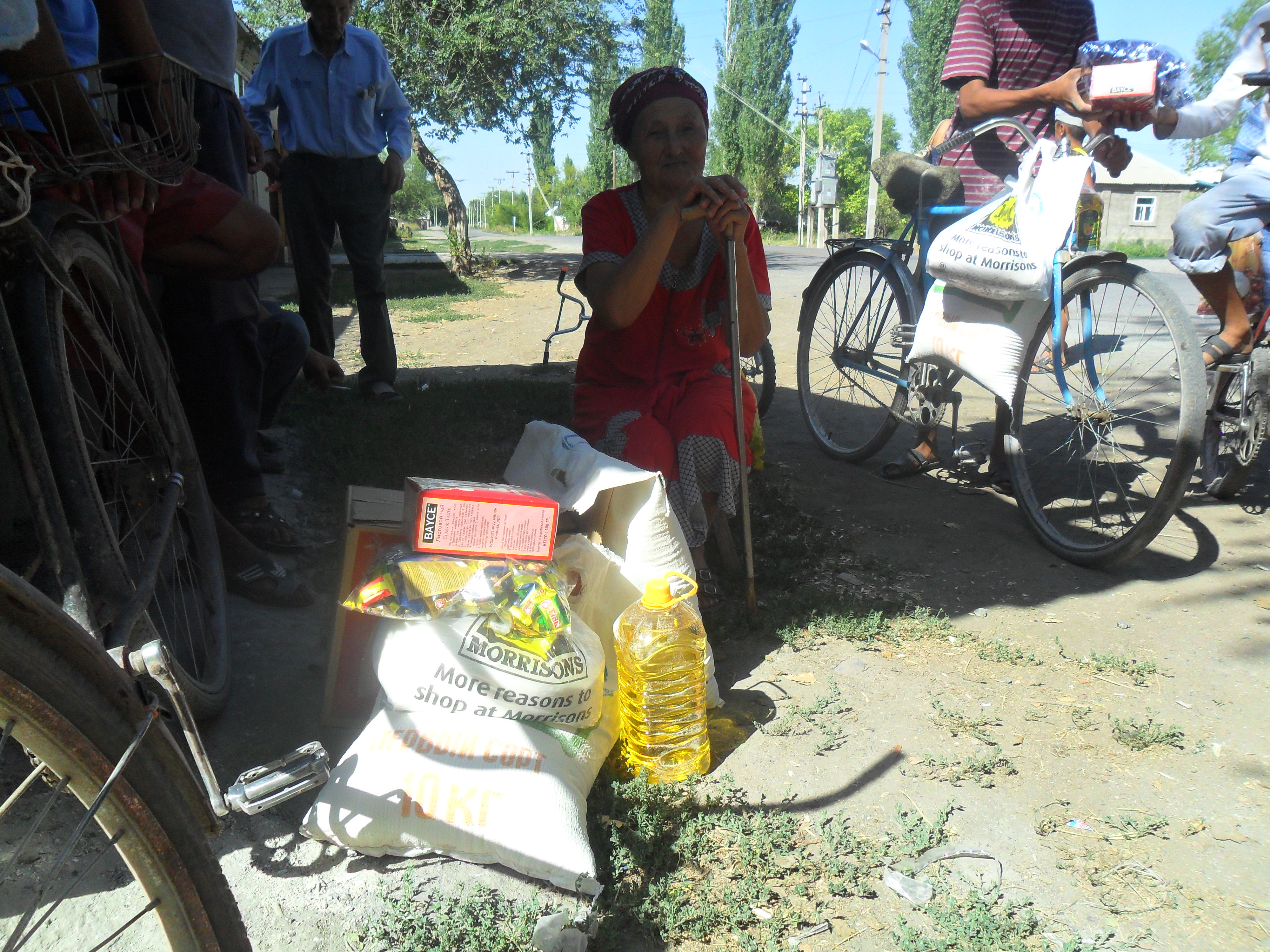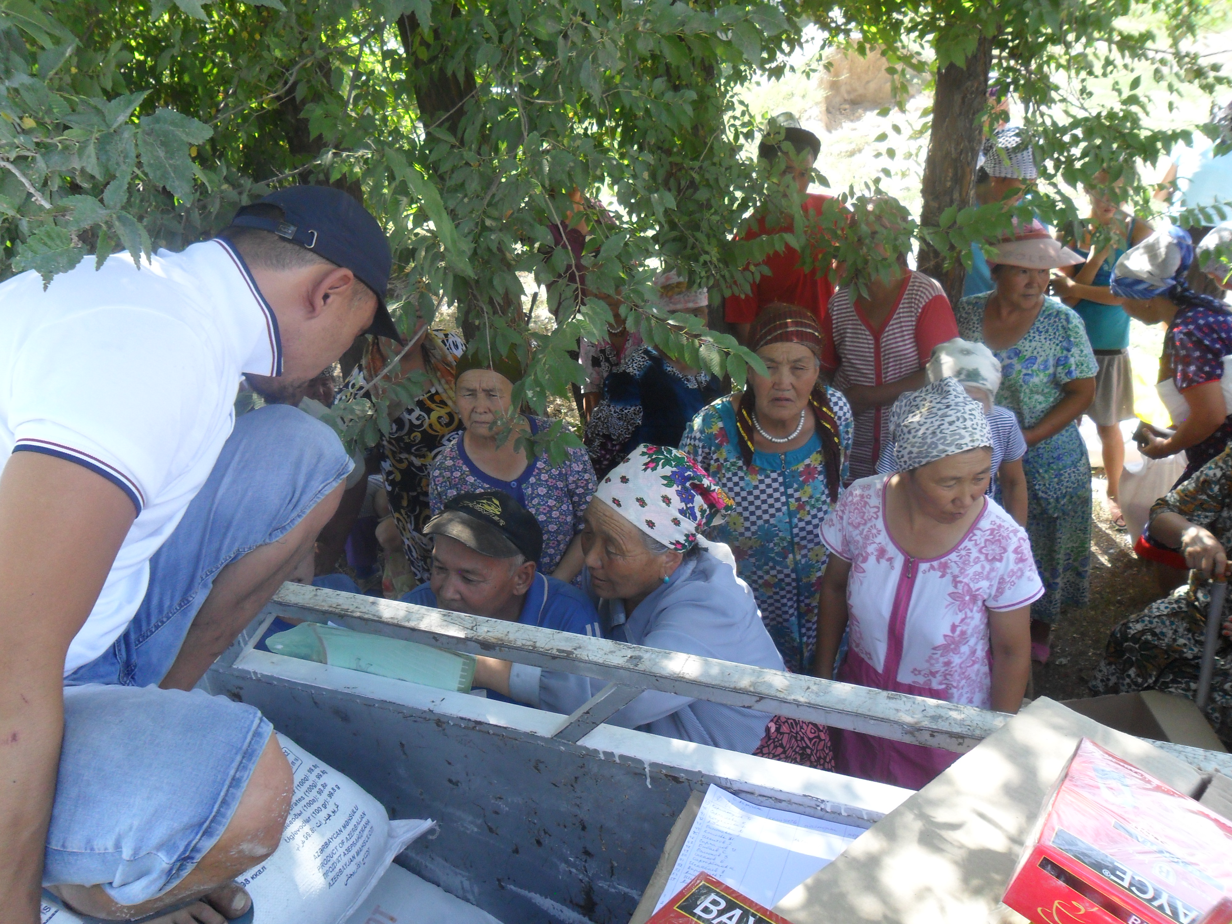 В Жайылском районе малообеспеченным жителям сел Арал и Айдарбек НПЗ «Джунда» оказала гумпомощь в виде продуктов питания (фото)