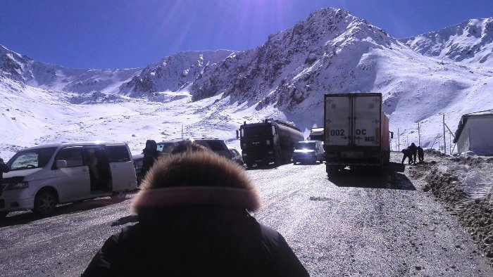 Фото — На перевале Тёо-Ашуу более 100 автомобилей попали в пробку
