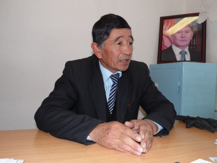 В селе Лахол Нарынского района зимой ученики школы проводят уроки физкультуры на открытой спортплощадке, - директор школы И.Алтымышев (фото)