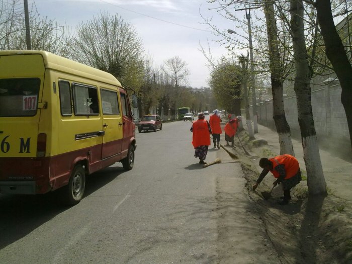 В городе Ош сотрудники предприятия «Ош-тазалык» провели субботник на улице Гагарина