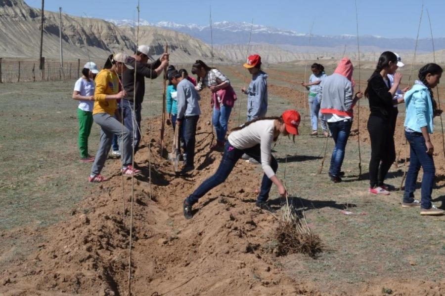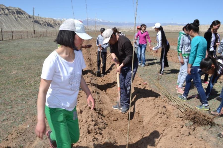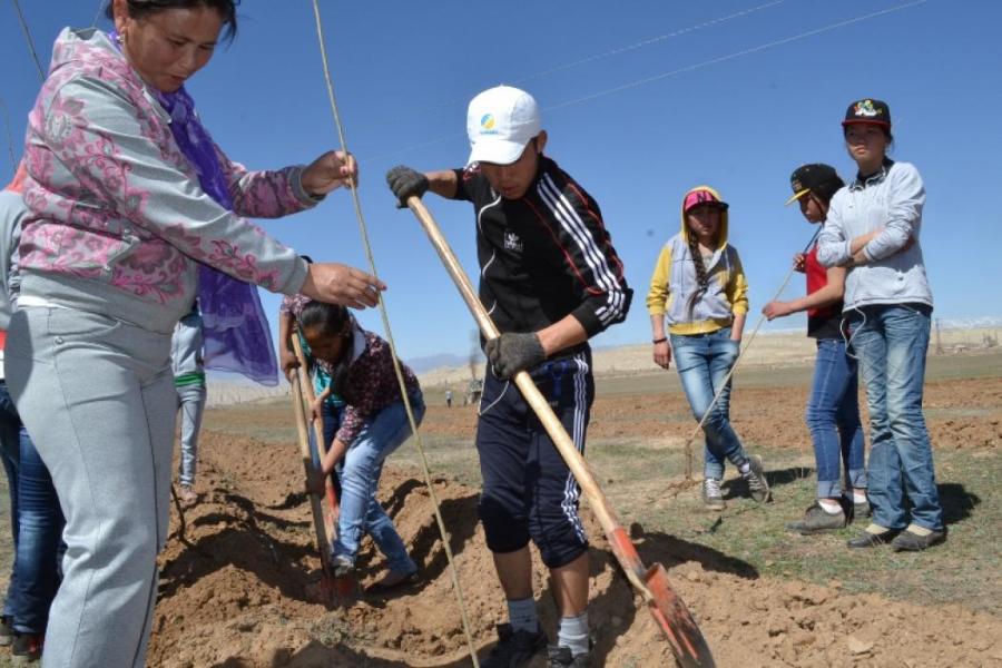 В селе Баетов Ак-Талинского района посадили 13 тыс. саженцев деревьев на территории парка «Жаштар» (фото)