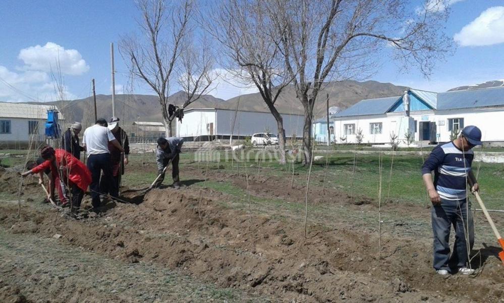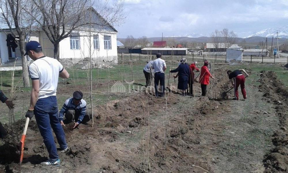 В селе Эмгекчил Нарынского района прошел субботник, где посадили саженцы деревьев (фото)