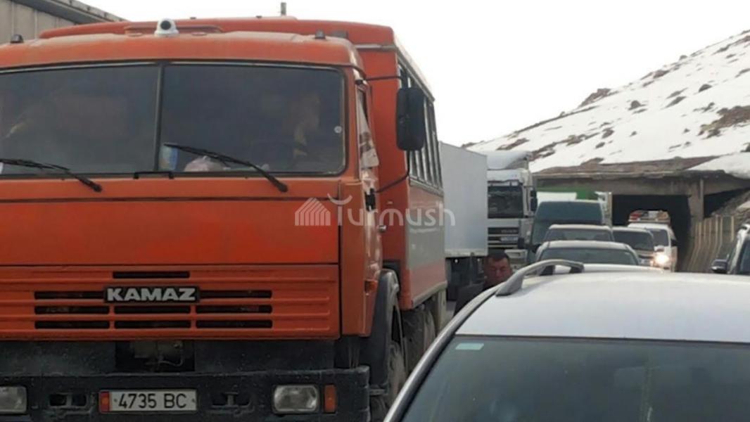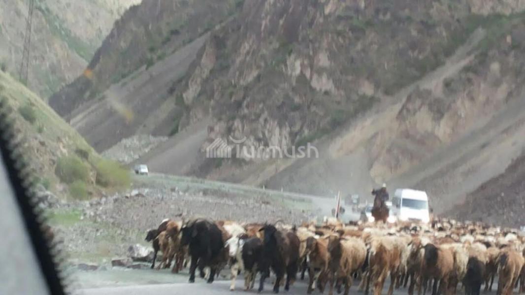 Фото — На перевале Тёо-Ашуу из-за перегона скота перед туннелем имени Кольбаева скопилось около 100 машин