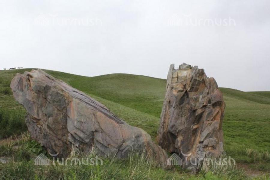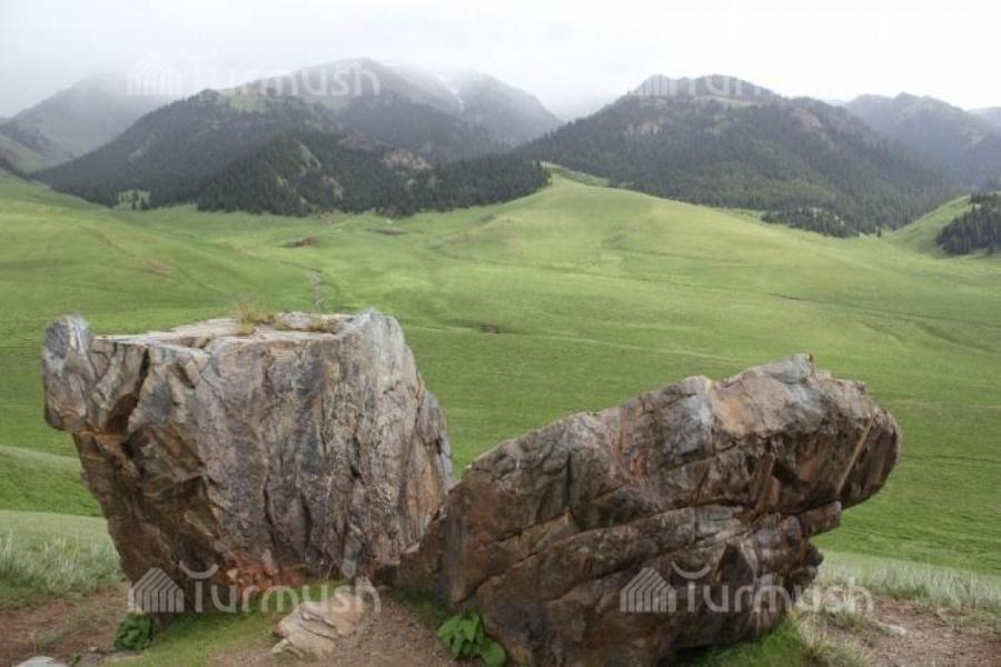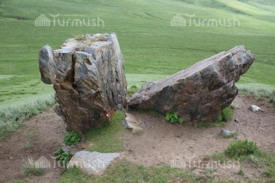 Фото — Разрубленный пополам камень на жайлоо Кара-Таш Нарынской области