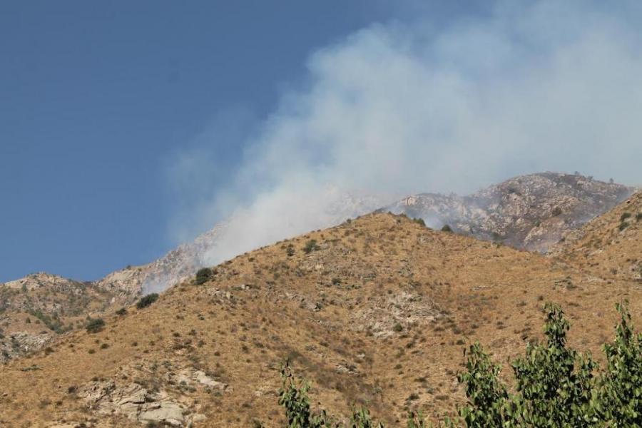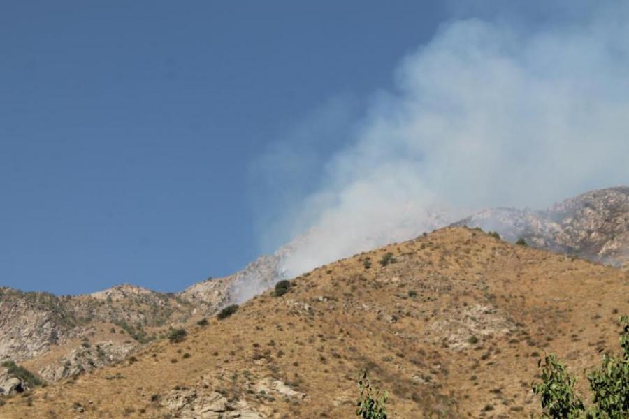 В Токтогульском районе в связи с пожаром в ущелье Чычкан организованы лагеря в трех местах (фото)