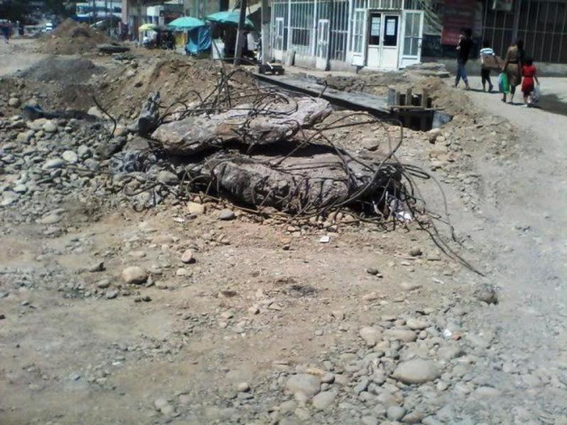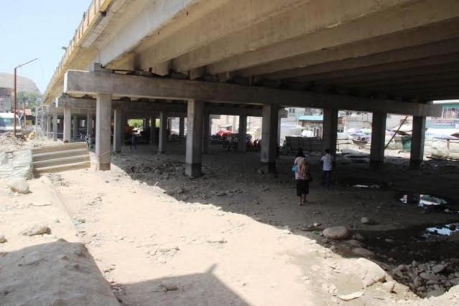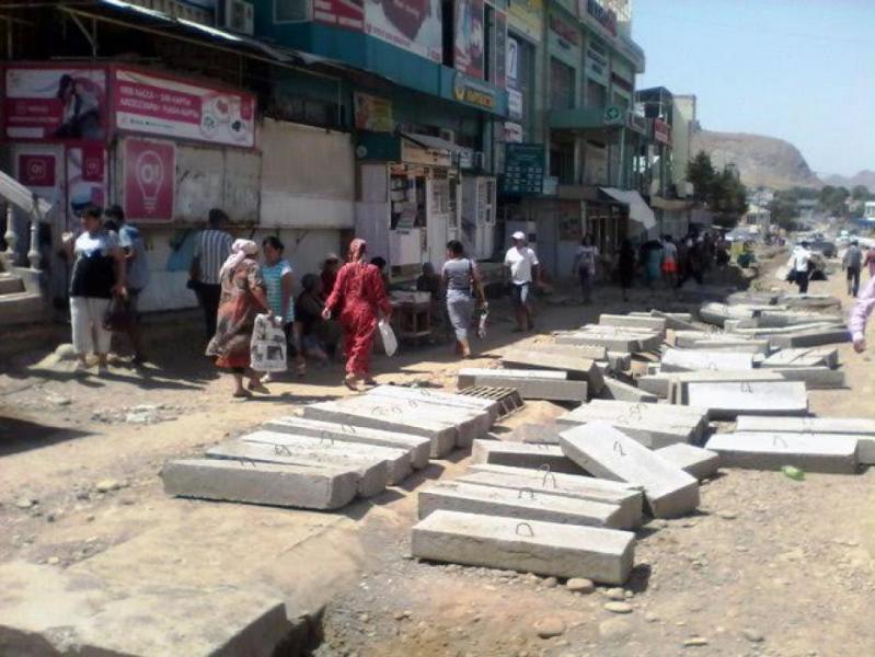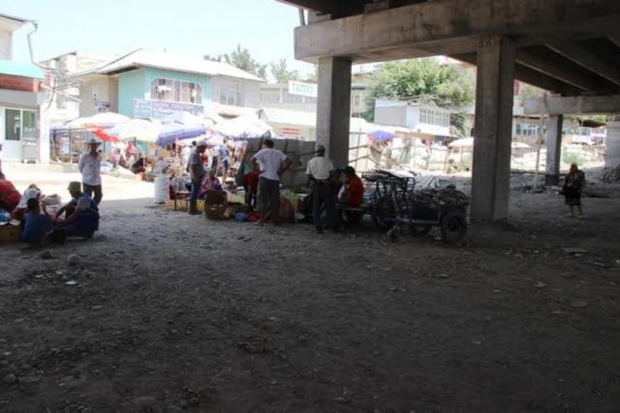 Фото - Стихийные торговцы и прохожие на месте строительства эстакадного моста