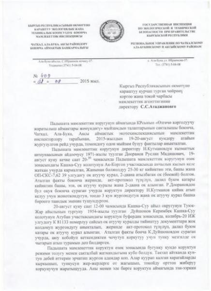 Водитель руководителя заповедника «Падыша-Ата» в Аксы по поручению шефа отстрелил горного козла, - Госэкотехинспекция (видео)
