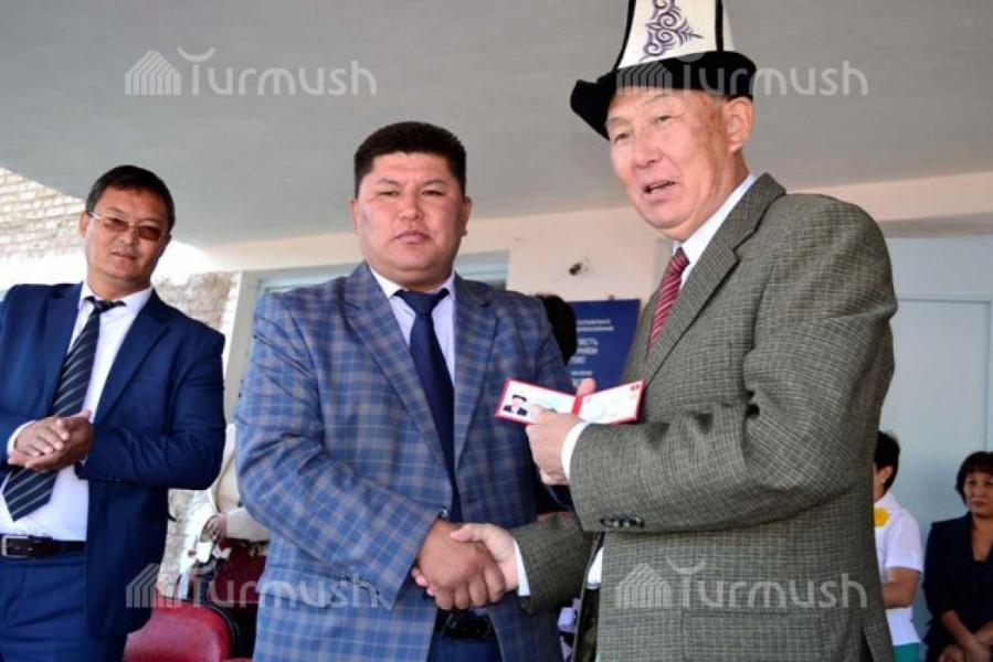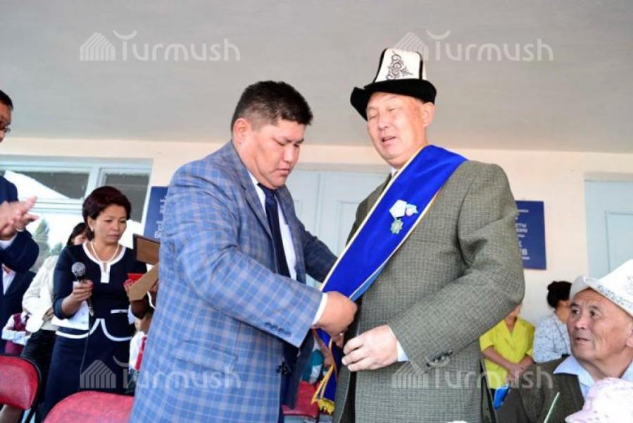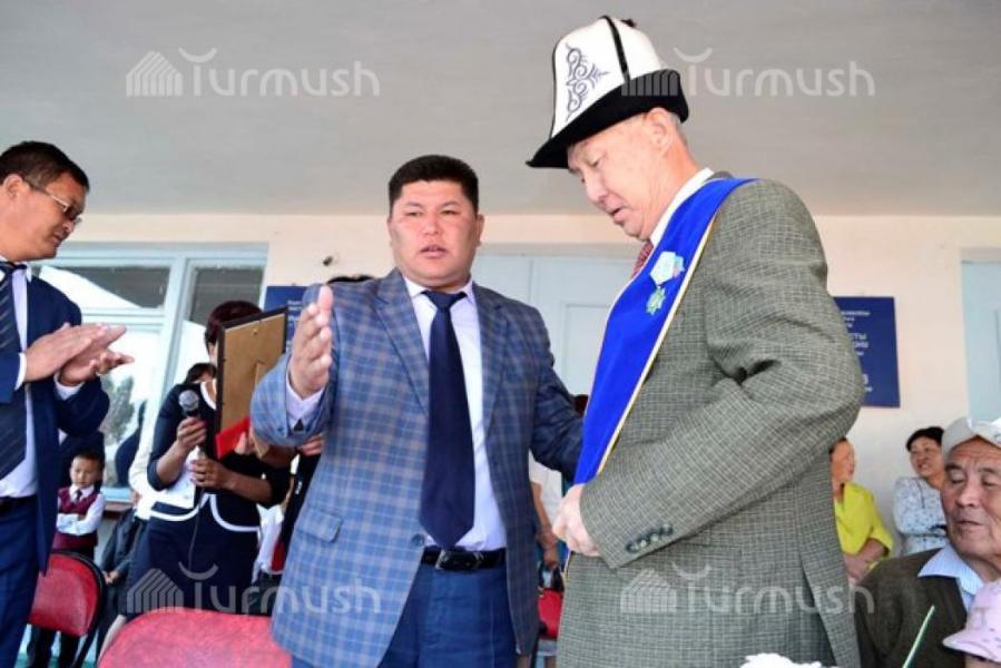В Ак-Талинском районе учителю школы им. Ш.Бейшеналиева Э.Абышбаеву вручили нагрудной значок ОО «Почетные аксакал и женщины» (фото)