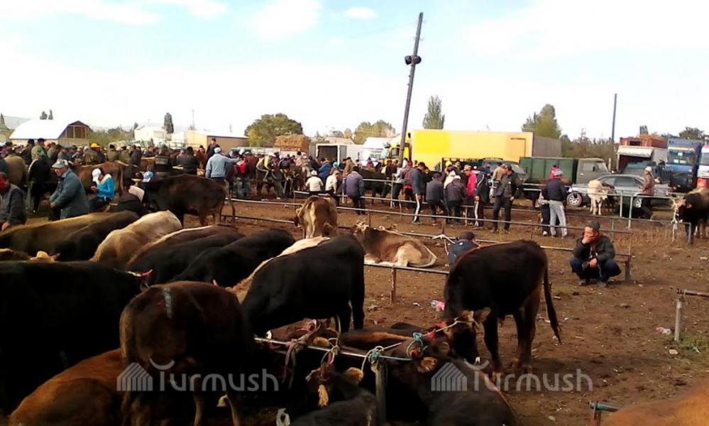 Фото — Жители Токмока и Оша активно закупают животных на скотном рынке в Караколе из-за низких цен