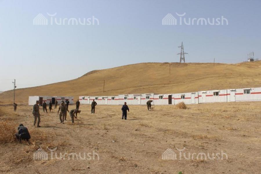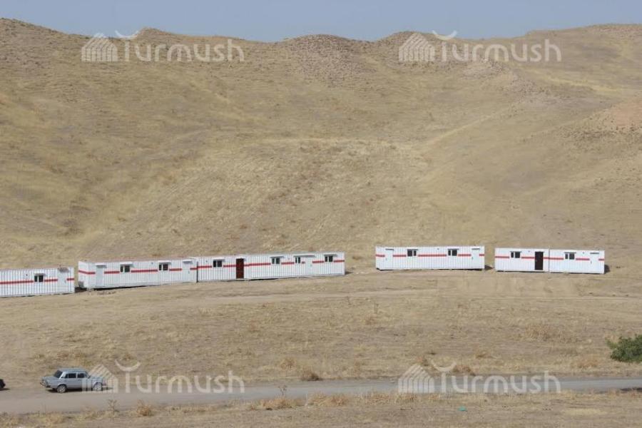 В селе Алмалык неподалеку от Оша, где 15 семей проживали в зоне схода оползня, установили мобильные дома