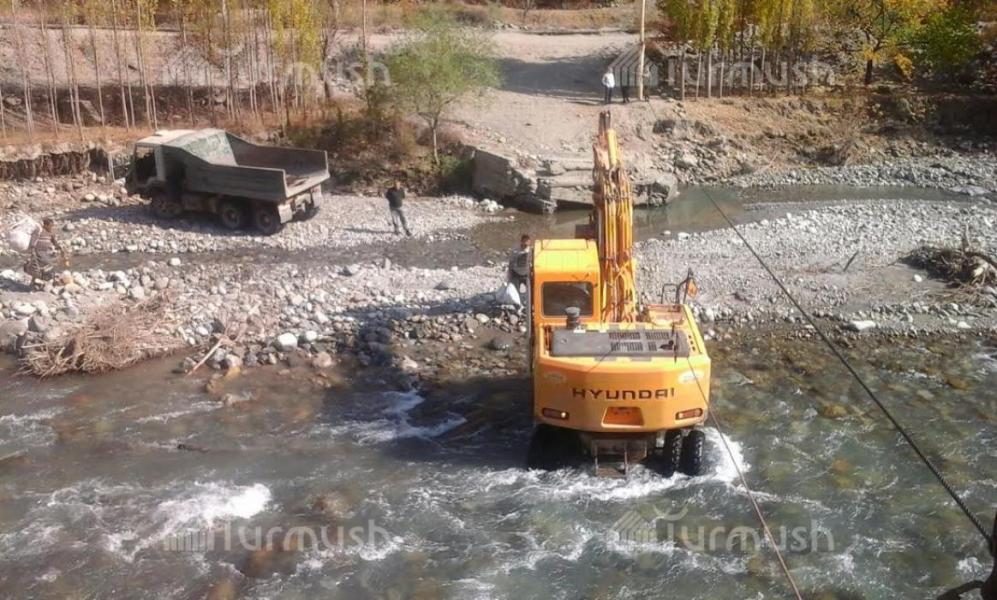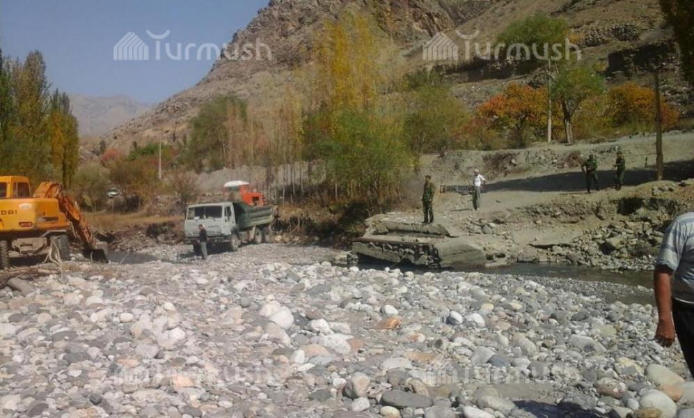 Фото — В Баткене на границе с Таджикистаном строят мост, через который можно проехать к кыргызской погранзаставе