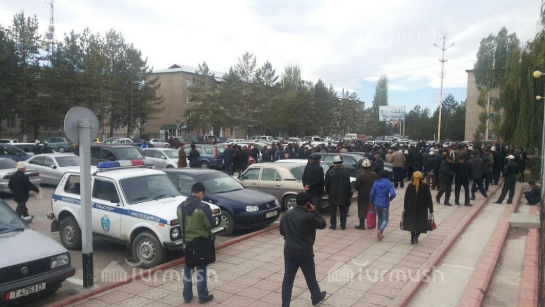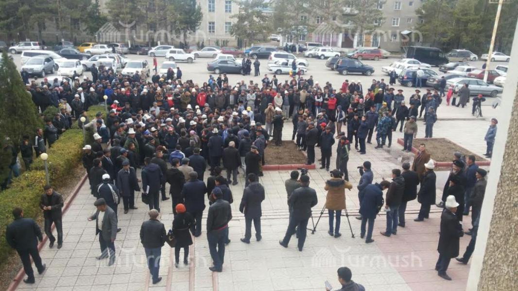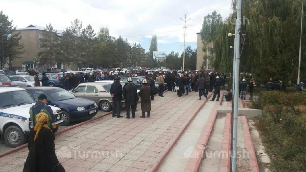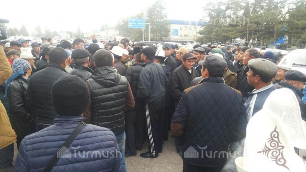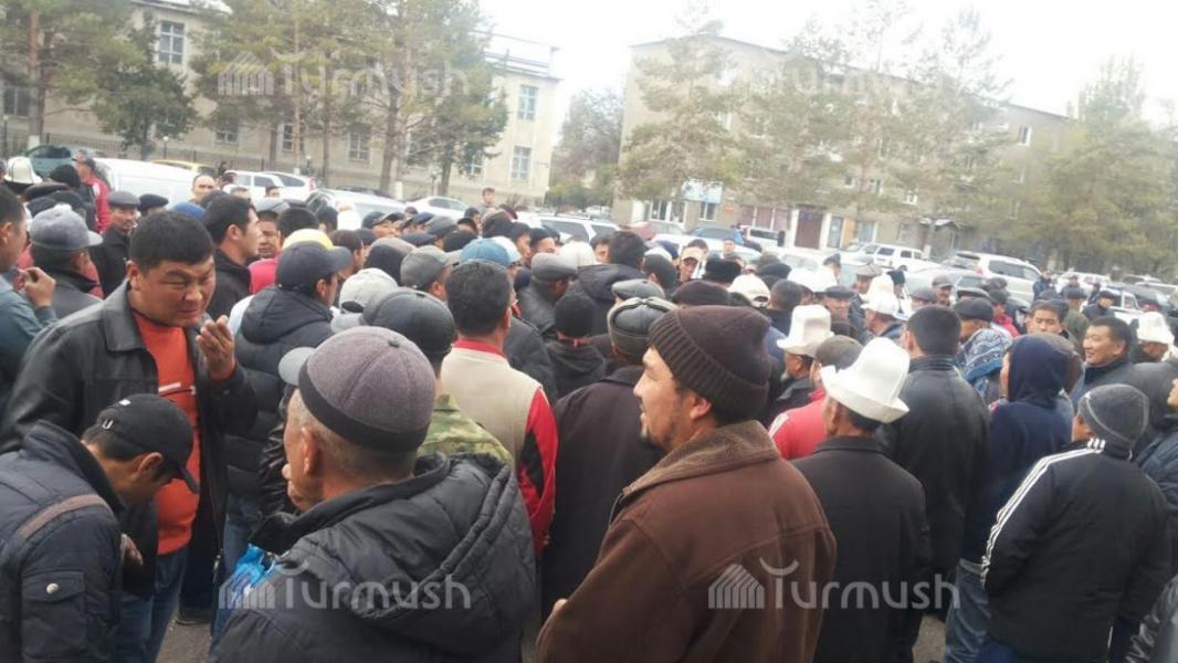 Фото — Возле здания полпредства в Таласе собрались фермеры, бастующие из-за низких цен на фасоль