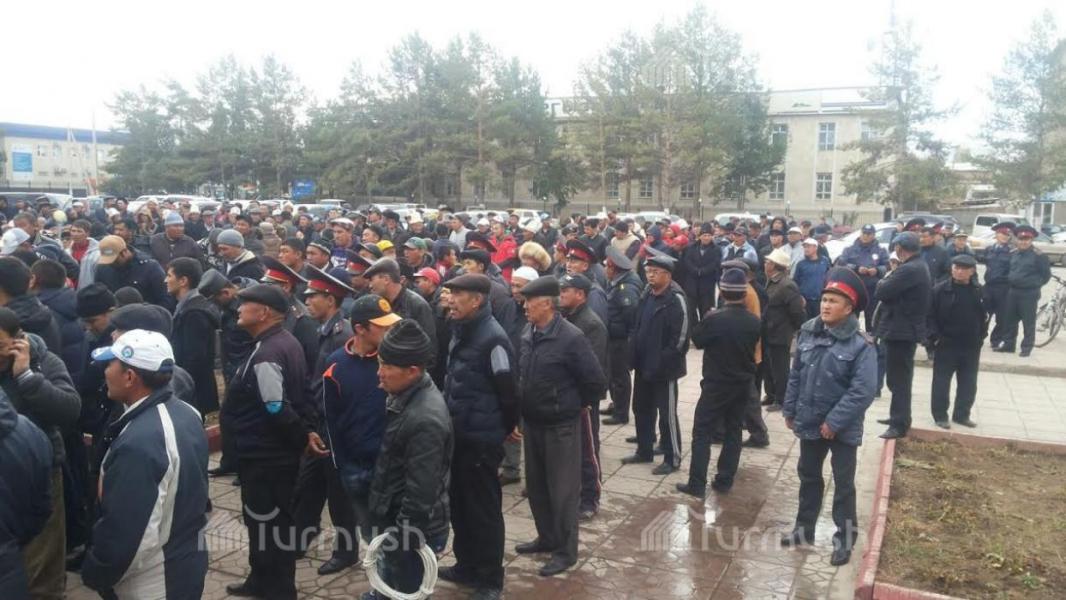 Собравшиеся фермеры в Таласе отказывают чиновникам на предложение провести переговоры в здании (фото)