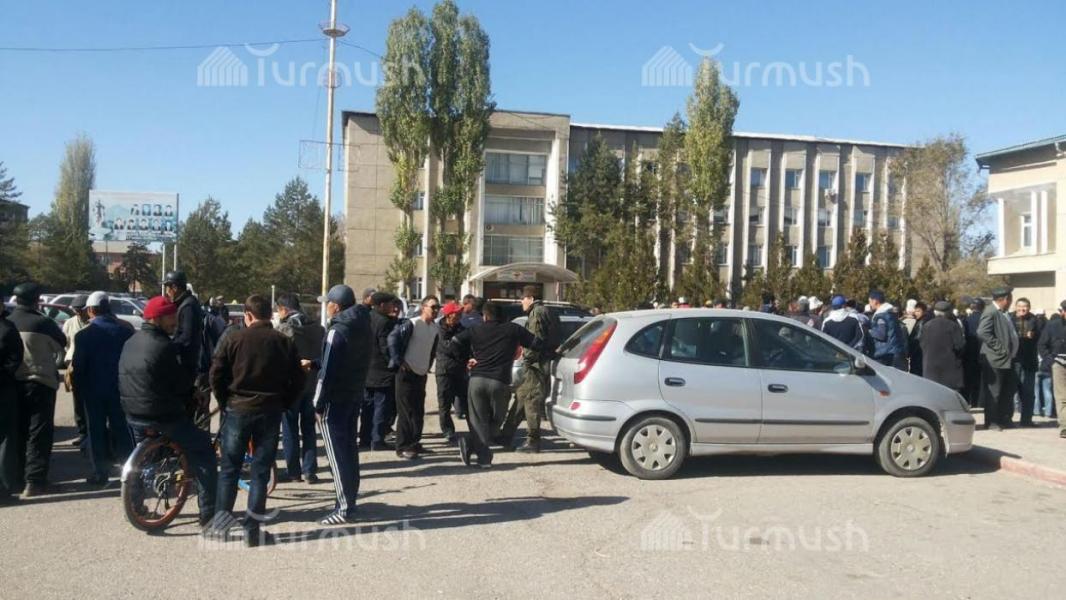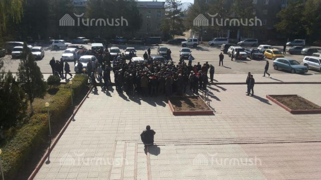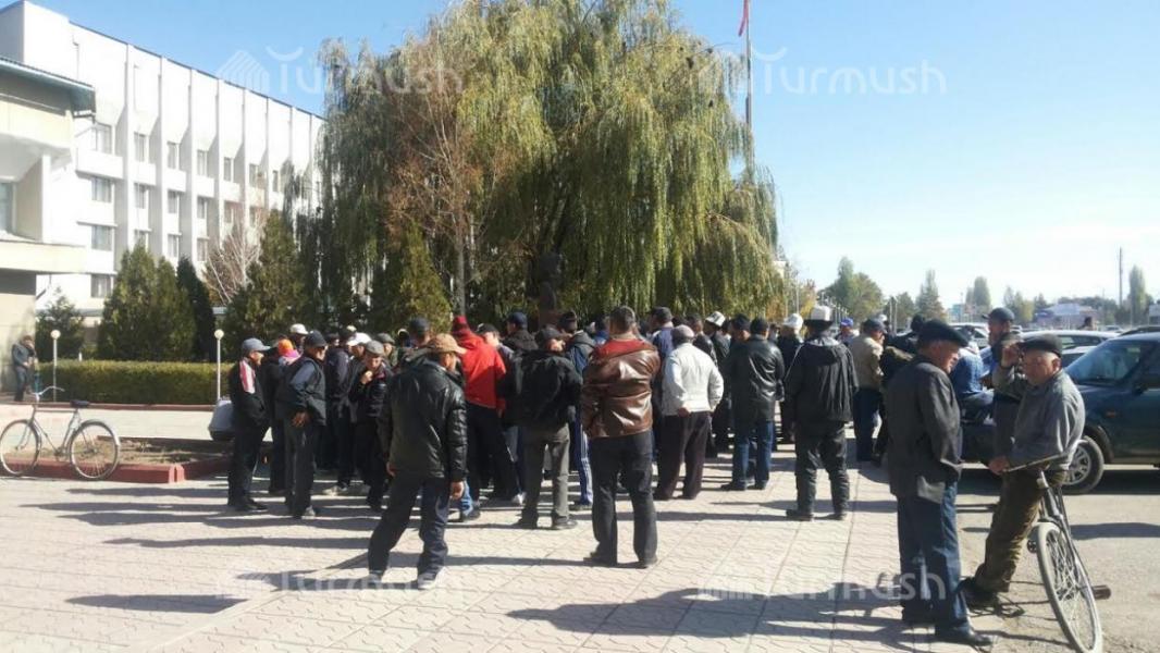 Фото — В Таласе фасолеводы вновь собрались на акцию протеста, заявляя об обещаниях кандидата в депутаты ЖК