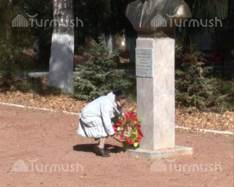 Дочь участника Великой Отечественной войны, кавалера ордена «Данк» Ч.Осмонова возложила цветы к памятнику своего отца (фото)