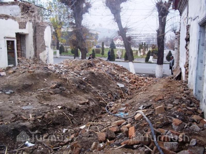 Фото — В Оше после сноса части исторического здания не ведется стройка и распродаются кирпичи, - горожане