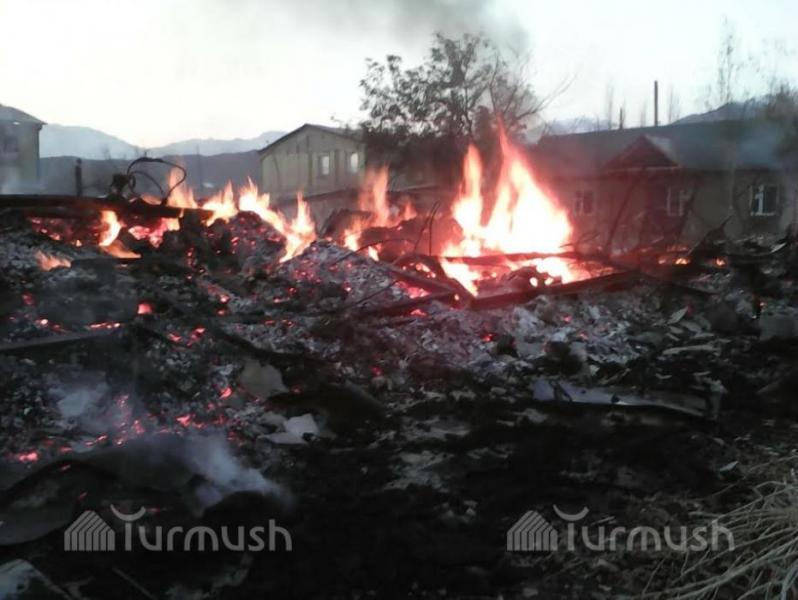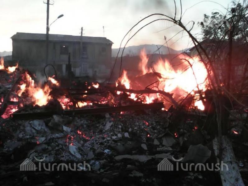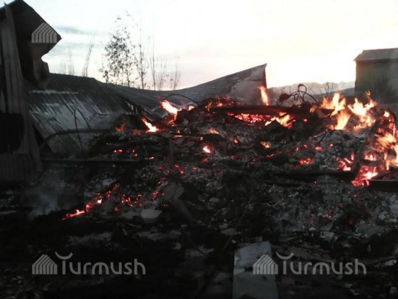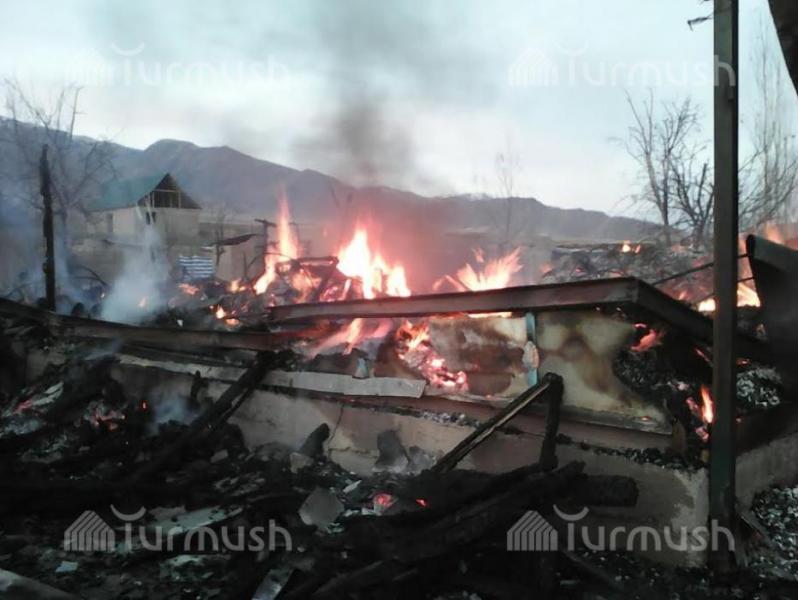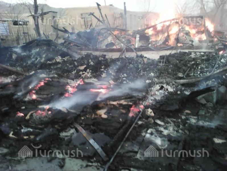 Фото — В Кара-Куле дотла сгорел двухэтажный дом, в одной из квартир жил сотрудник МЧС