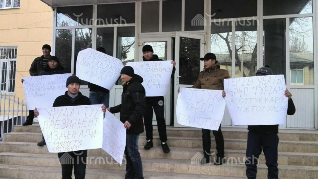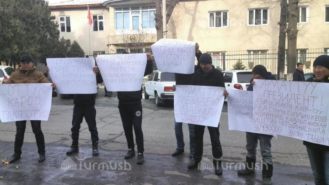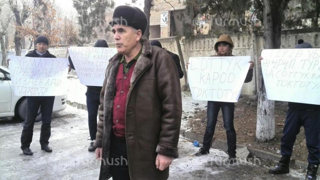 Фото — В Оше возле здания областного суда проходит акция протеста торговцев рынка «Тураталы»