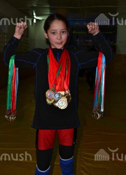 Жизнь в регионах: Ученица из Ак-Талы К.Билимбек кызы с 5 лет занимается вольной борьбой (фото)