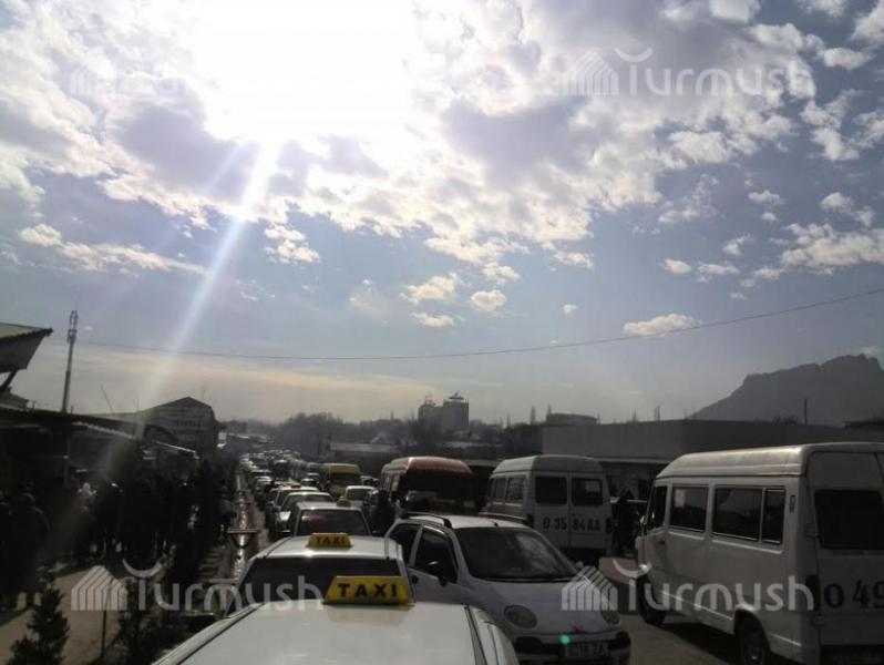 В Оше из-за ДТП образовалась автомобильная пробка протяженностью несколько сотен метров (фото)