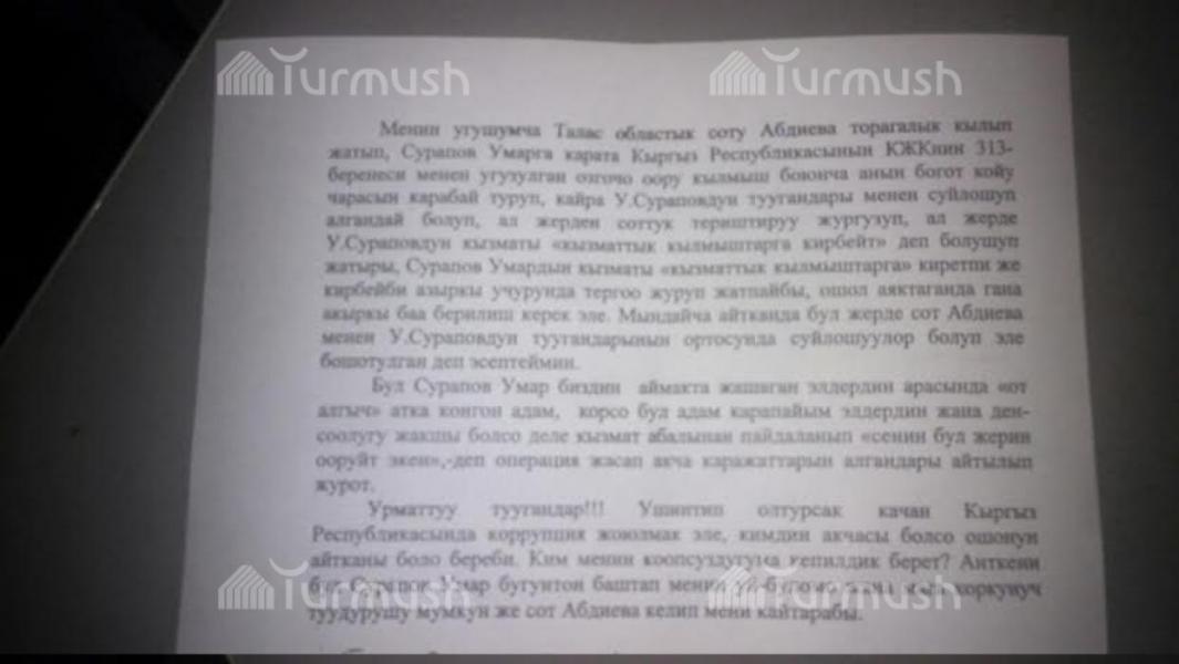Житель Таласа, у которого врач требовал 11 тыс. сомов за операцию супруге, заявил, что областной суд выпустил задержанного (видео)