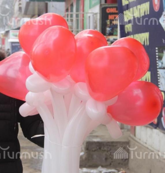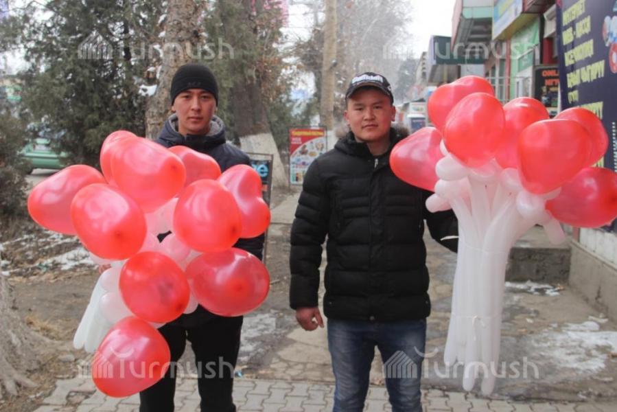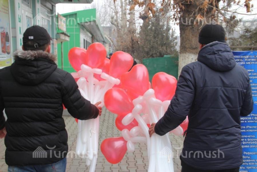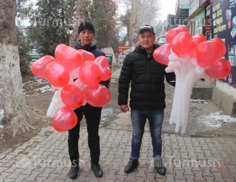 Молодежь Оша в День влюбленных делала любимым креативные подарки в виде цветочных шаров (фото)